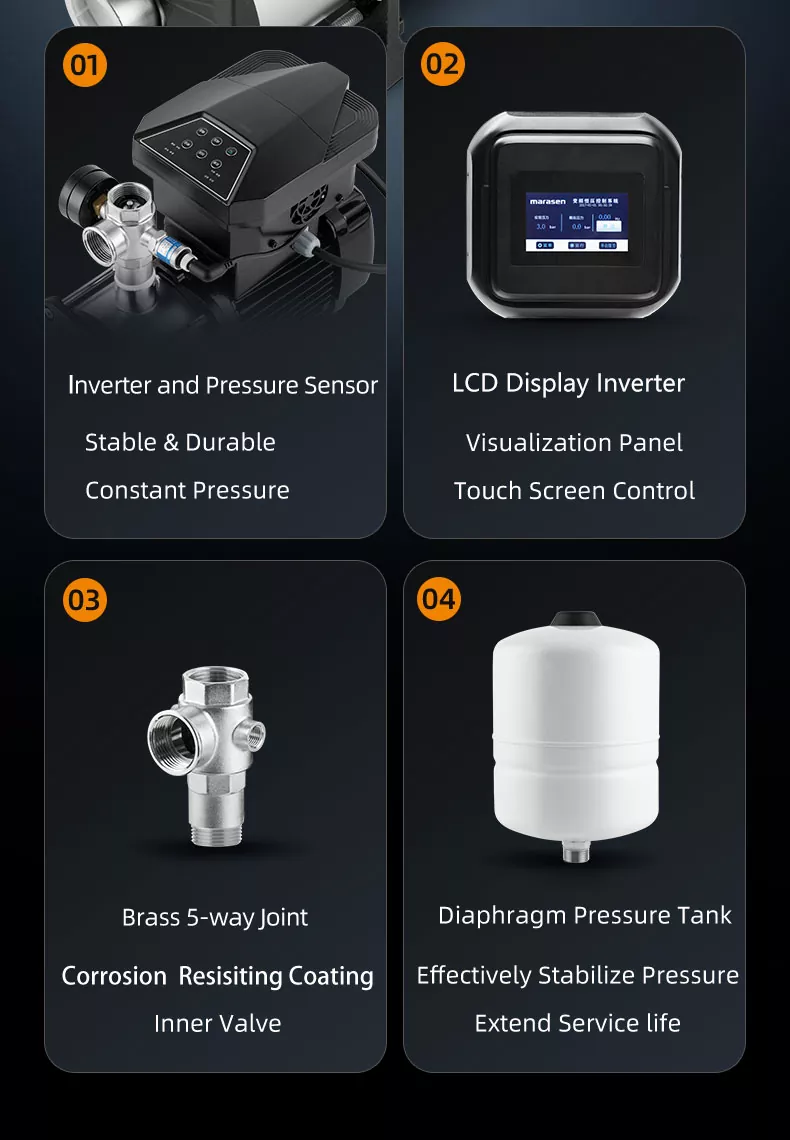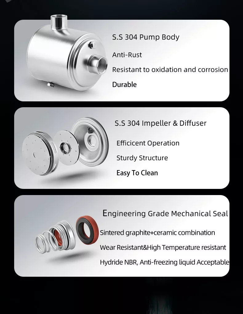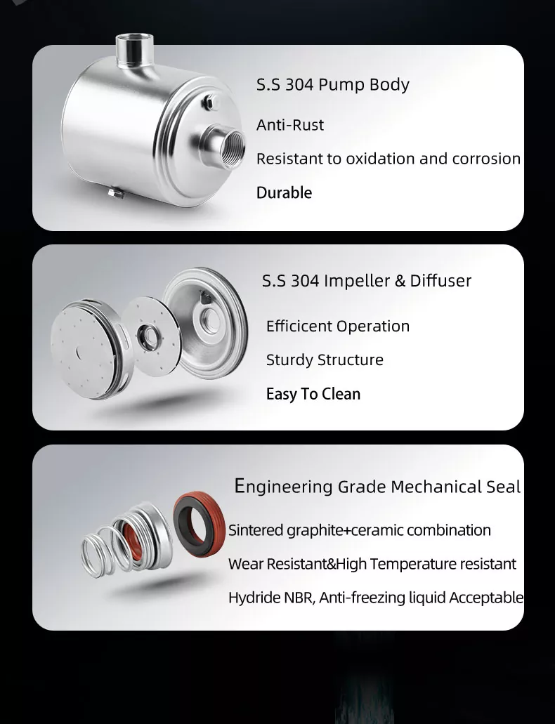 3. Vsestranske uporabe: Ne glede na to, ali morate povečati pritisk vode v zgradbah, namakalnih sistemih ali industrijskih procesih, je ta črpalka dovolj vsestranska, da z lahkoto zadovolji širok spekter potreb.