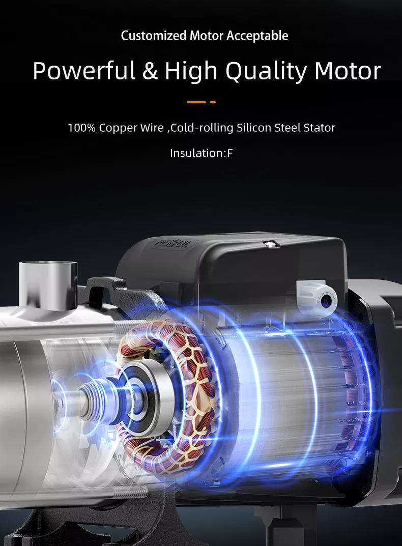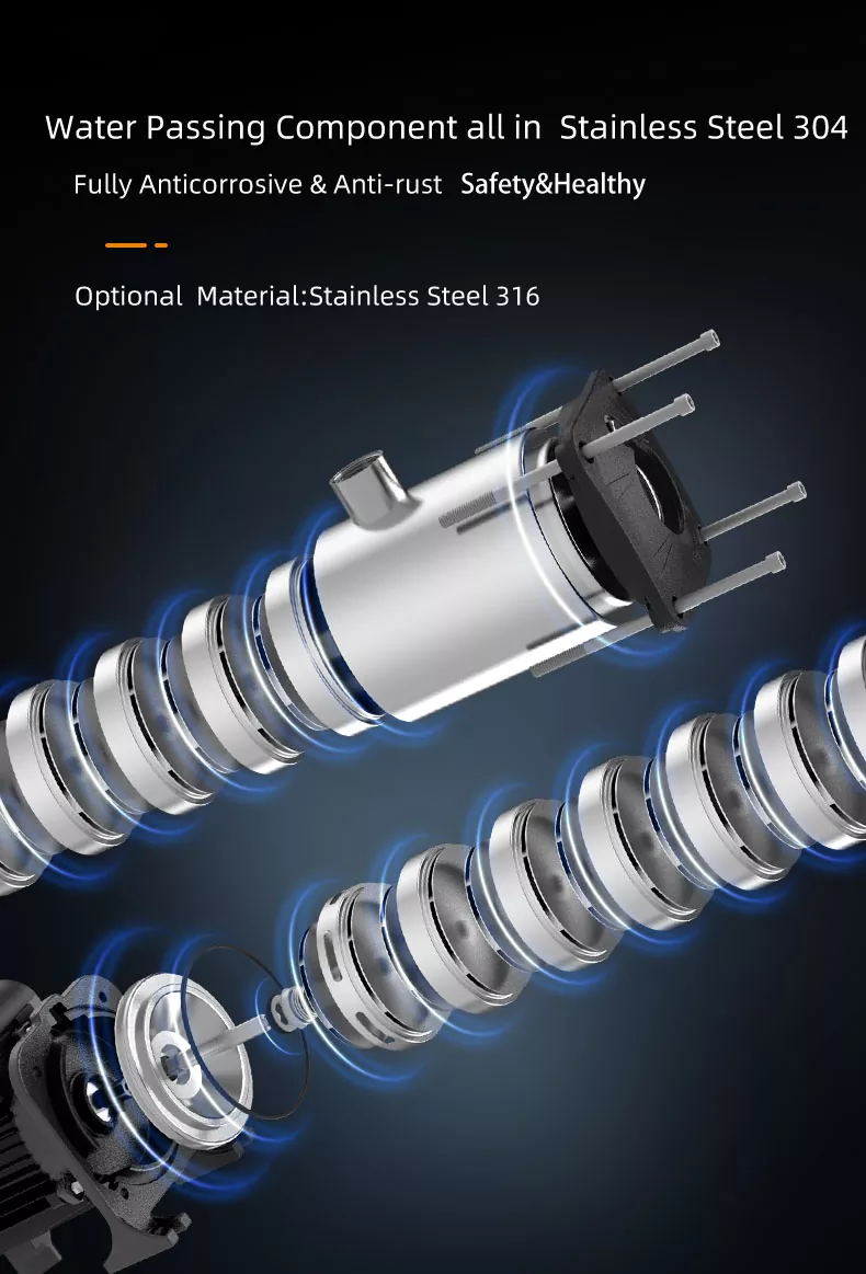 2. Robustna konstrukcija: Naša večstopenjska črpalka, izdelana za dolgotrajno uporabo, je izdelana iz materialov vrhunske kakovosti, ki zagotavljajo dolgoročno zanesljivost in minimalne zahteve glede vzdrževanja ter vam prihranijo čas in denar.