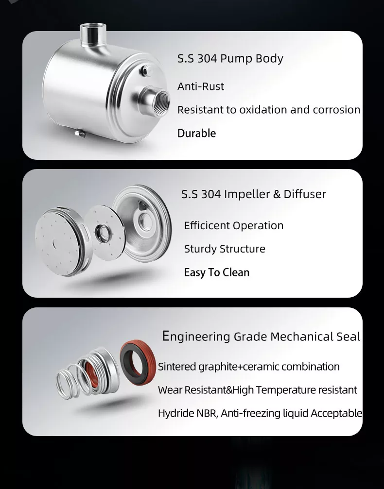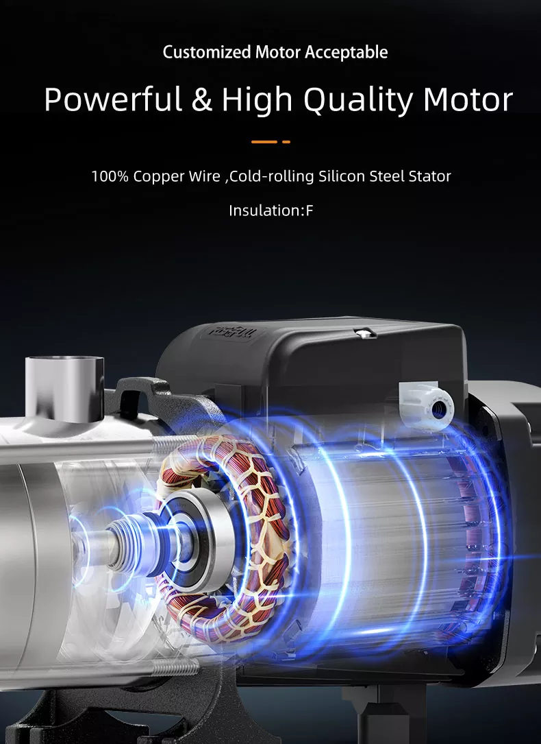 Trajnost je ključna, ko gre za vodne črpalke in naša pametna večstopenjska tlačna črpalka je zgrajena tako, da traja. Ta črpalka, zgrajena iz kakovostnih materialov in zasnovana za dolgoročno zanesljivost, je naložba, ki vam bo dobro služila v prihodnjih letih. Ne glede na to, ali ga uporabljate za stanovanjske ali poslovne aplikacije, lahko zaupate, da bo ta črpalka zdržala preizkus časa.