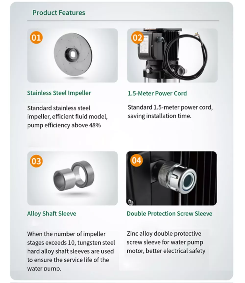To črpalko odlikuje odpornost proti koroziji, visoka učinkovitost, varčevanje z energijo in kompaktna struktura, zaradi česar je primerna za oskrbo z vodo in transport industrijskih tekočin.