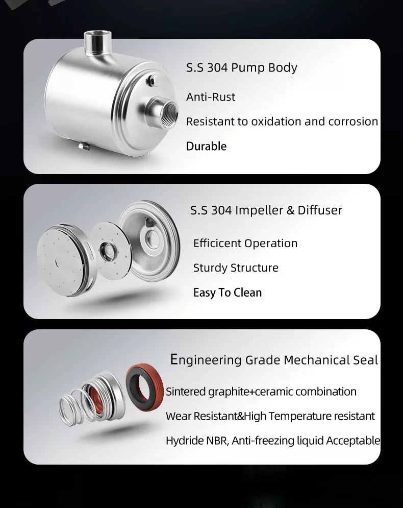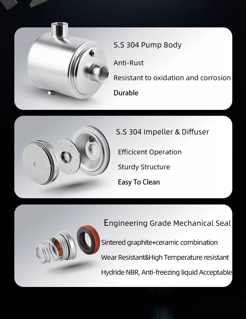 Od oskrbe z vodo in povečanjem tlaka do industrijskih hladilnih in obtočnih sistemov je naša horizontalna večstopenjska črpalka iz nerjavečega jekla dovolj vsestranska, da lahko obvlada široko paleto aplikacij. Njegova večstopenjska konfiguracija omogoča višji tlačni zmogljivosti, zaradi česar je idealna za uporabo v visokih stavbah in komercialnih objektih.