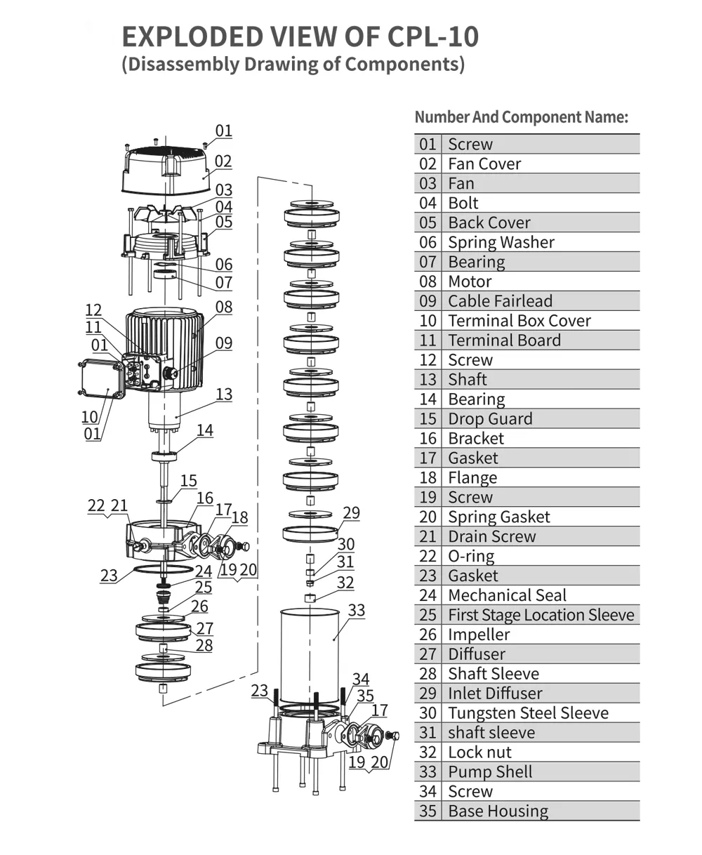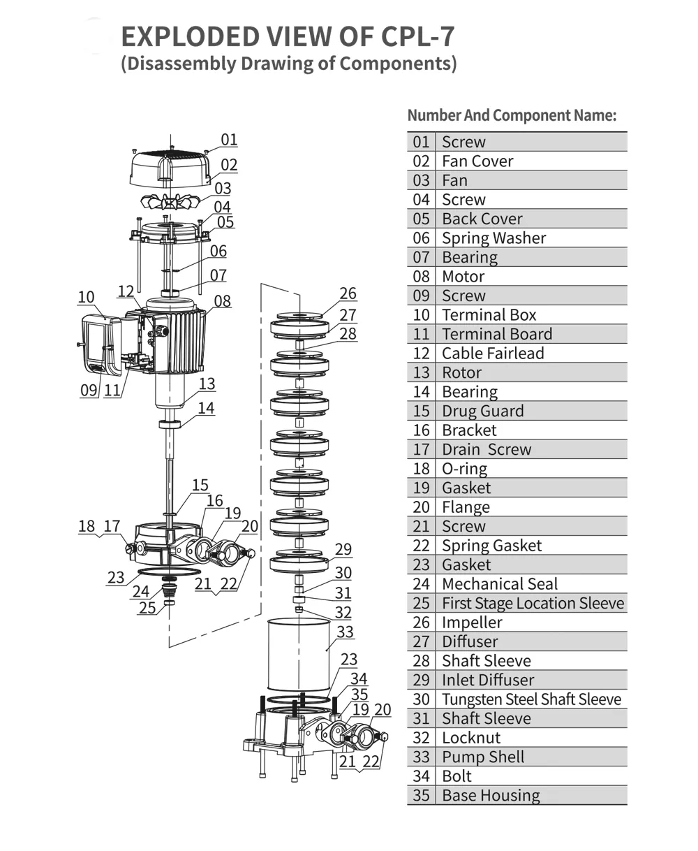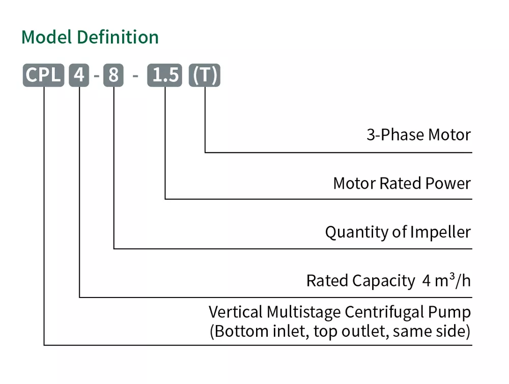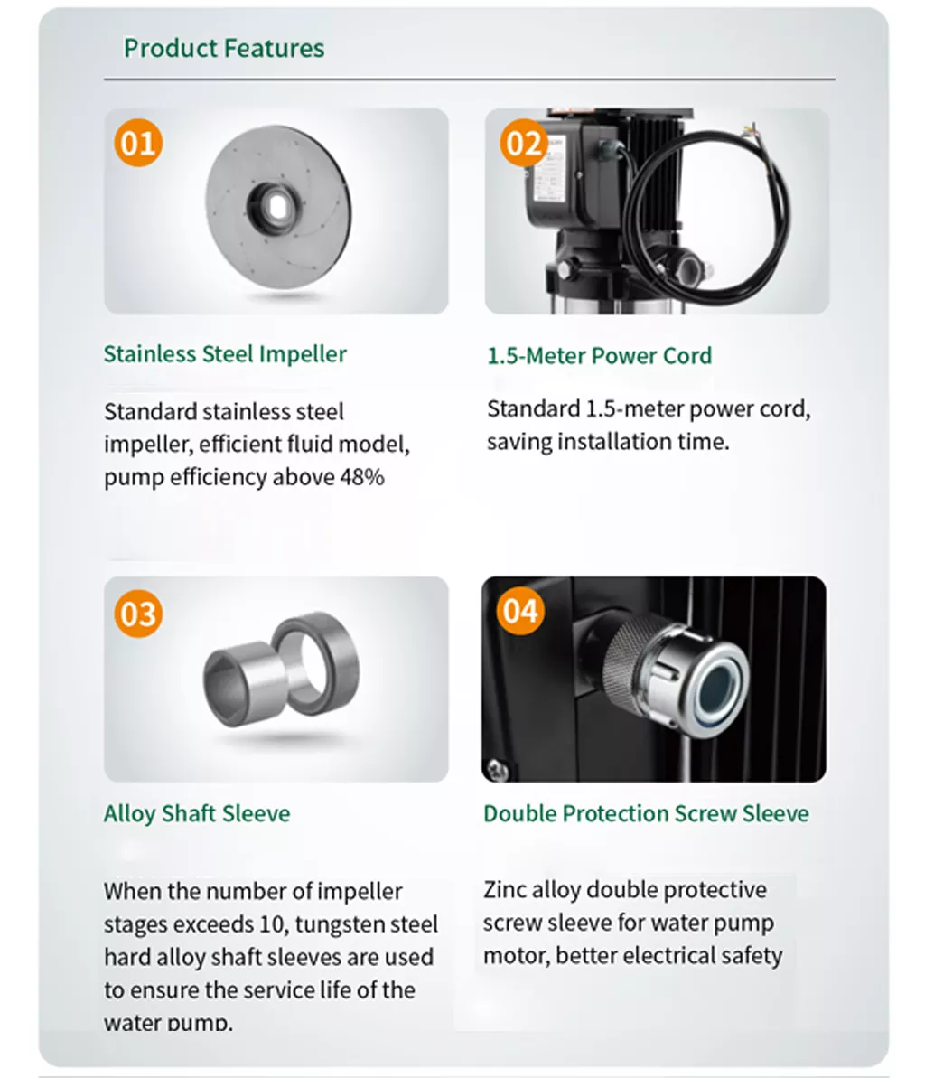 Višino črpalke je mogoče prilagoditi s spreminjanjem števila rotorjev, da ustreza različnim zahtevam. Primeren je za čisto vodo ali tekočine s podobnimi lastnostmi, nekatere modele pa je mogoče prilagoditi za korozivne medije.